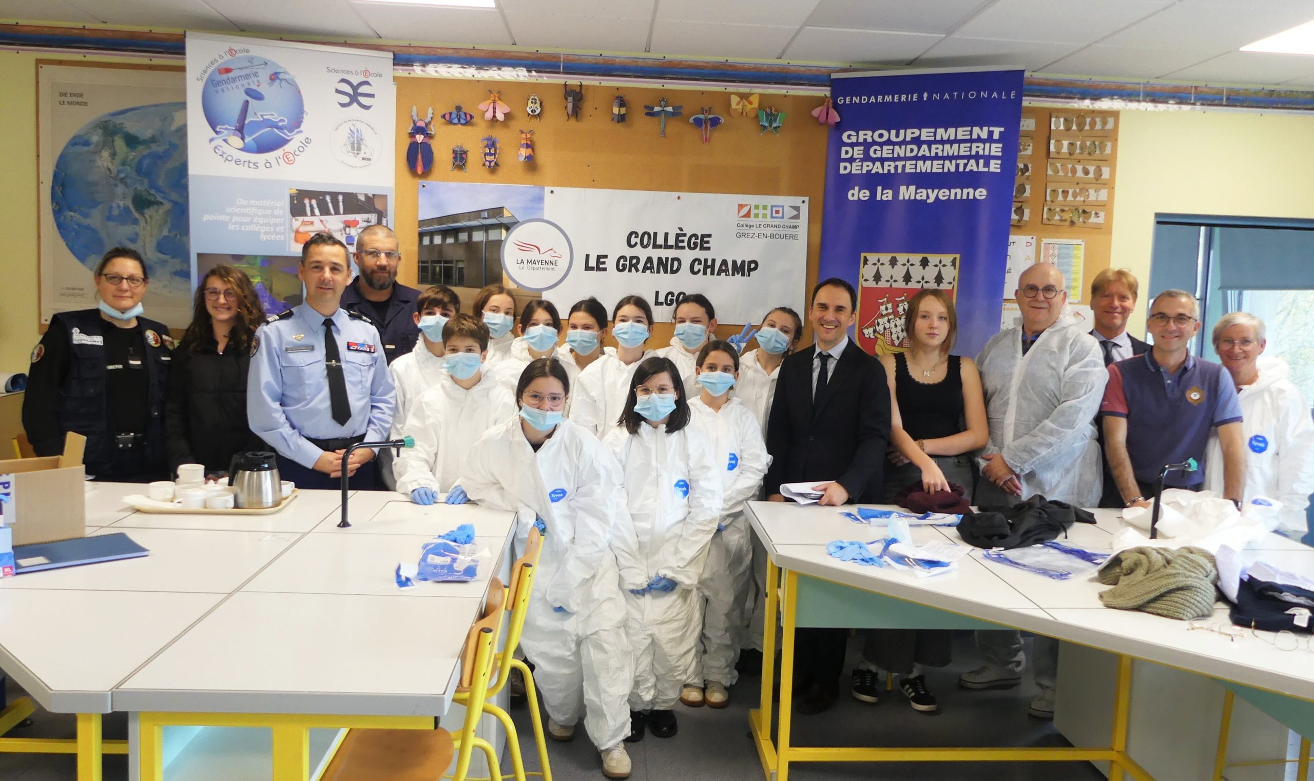 🔬 EXPERTS à l’École au collège Le Grand Champ de Grez-en-Bouère (Académie de Nantes) – Le directeur académique de la Mayenne et le commandant du groupement de gendarmerie départementale de la Mayenne aux côtés des élèves et de l’équipe pédagogique !