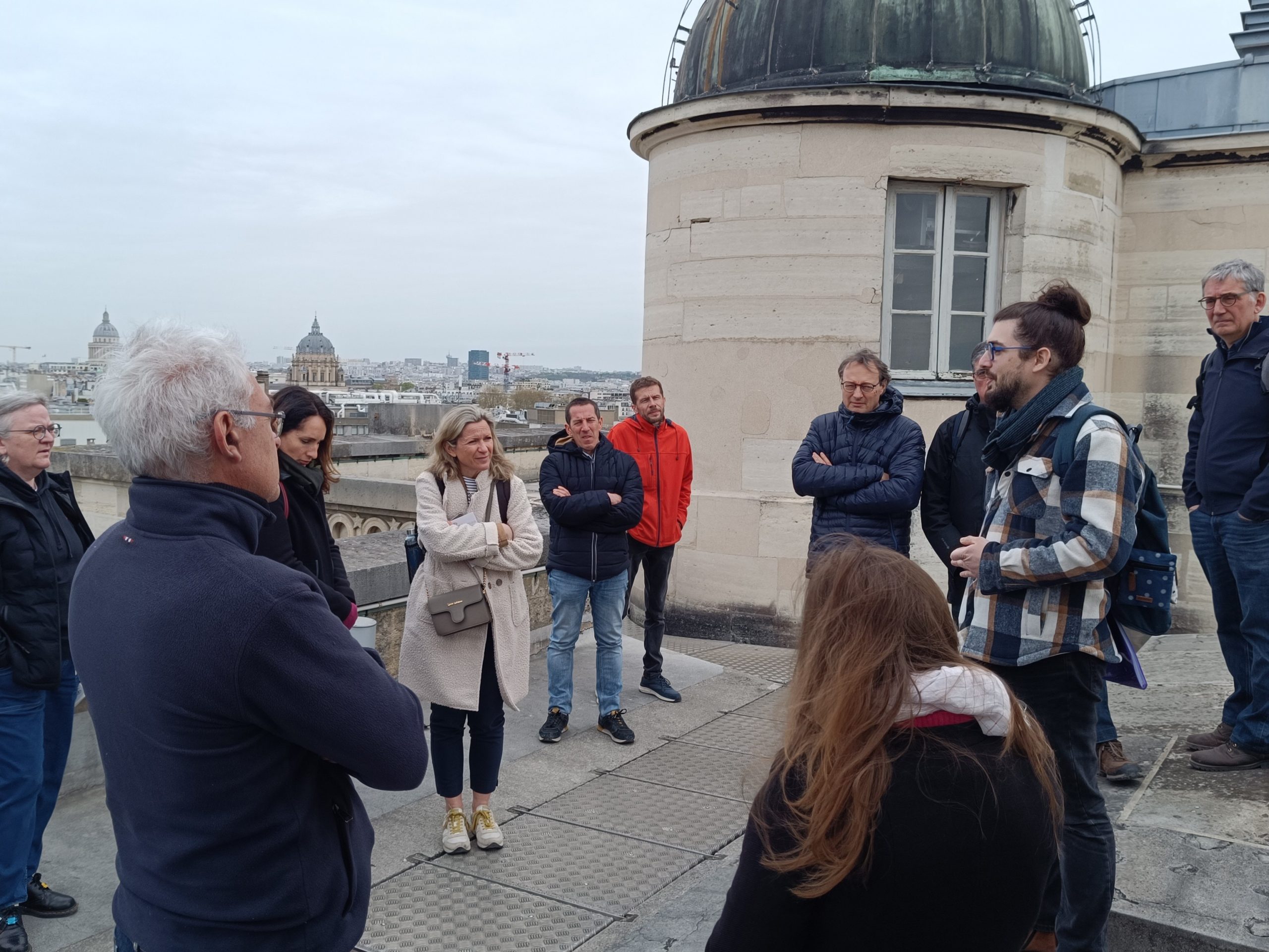 Le séminaire a débuté le vendredi 27 mars 2026 par une visite de l’Observatoire de Paris – PSL (site de Paris). Les participants ont été accueillis par Étienne Martel, docteur en astrophysique et membre de la cellule de ressources de « Sciences à l’École ». Il leur a présenté l’histoire de l’Observatoire de Paris, l’exposition de la Grande Galerie du bâtiment Perrault, et la « salle-instrument » Cassini. La visite a été clôturée sous la coupole Arago. L’après-midi, les participants ont été invités à visiter la plateforme QUALAIR (Camille Viatte) spécialisée dans la recherche expérimentale dédiée à l’observation des variabilités chimiques et des dynamiques de l’atmosphère sur le campus Jussieu de Sorbonne Université. Dans les locaux du Laboratoire Atmosphères, Observations Spatiales (LATMOS), trois interventions ont permis aux participants de découvrir des exemples de thématiques de recherche actuelles :