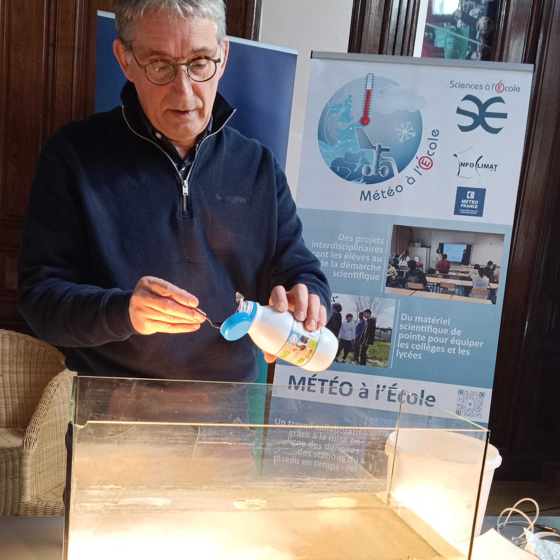 La suite du séminaire s’est déroulée dans les locaux de l’Académie du Climat à Paris. Samedi 28 mars, Jean-Yves Daniel, président du dispositif ministériel « Sciences à l’École », était présent pour ouvrir la journée. Bertrand Pajot, inspecteur général honoraire et président du comité scientifique « MÉTÉO à l’École », a souligné l’intérêt de croiser les regards des enseignants du projet Calisph’Air et des enseignants du réseau « MÉTÉO à l’École ». Goulwen Le Guevel et Estelle Raynal ont ensuite respectivement présenté l’opération « MÉTÉO à l’École » et le projet éducatif Calisph’Air. La matinée était consacrée à des conférences scientifiques :