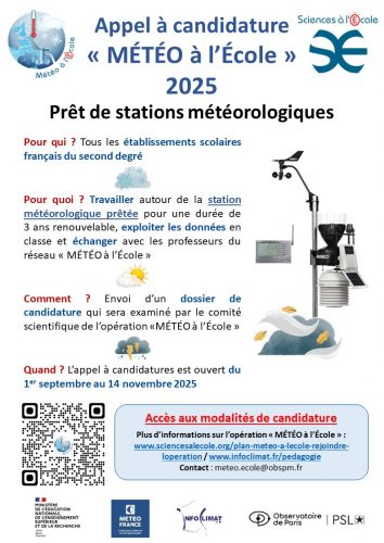 Les candidatures peuvent être transmises tout au long de l’année scolaire à meteo.ecole@obspm.fr
