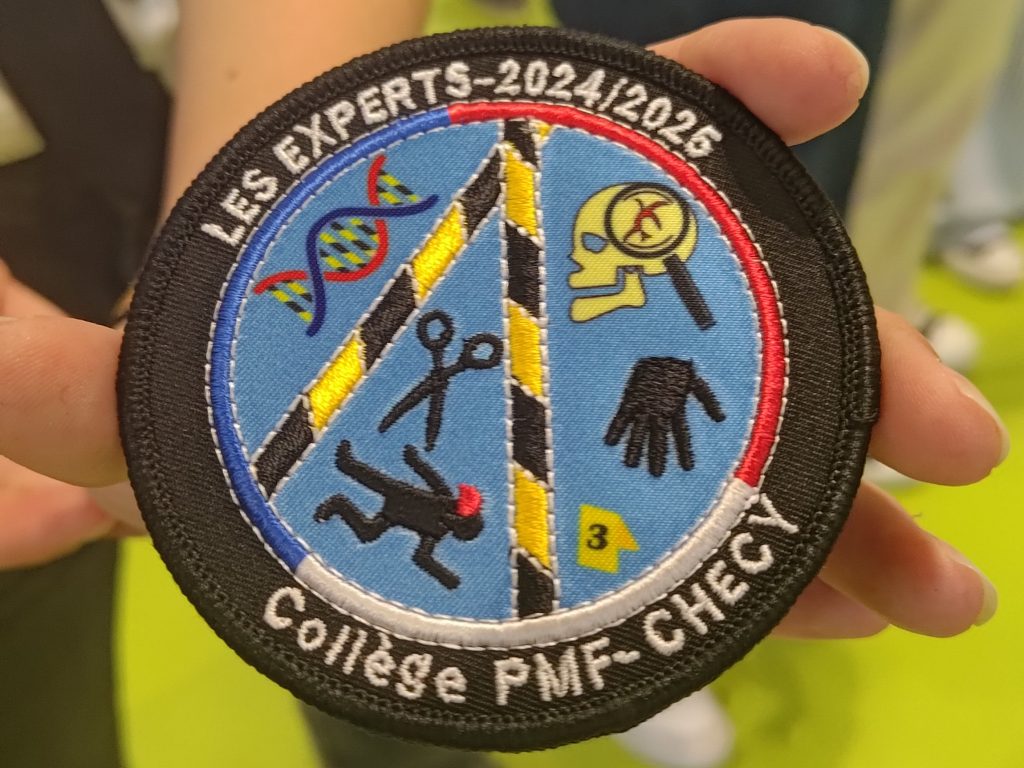 Semblable à celle portée par les gendarmes sur leur épaule et représentant leur unité militaire, cette rondache rappelle les éléments clés de l’enquête autour de la résolution d’un crime fictif et les activités scientifiques qui les ont occupés durant une année scolaire et dont ils proposent une restitution théâtrale jouée devant les familles réunies au collège. Elle symbolise aussi et surtout l’engagement de toutes et tous à la réussite de ce projet.